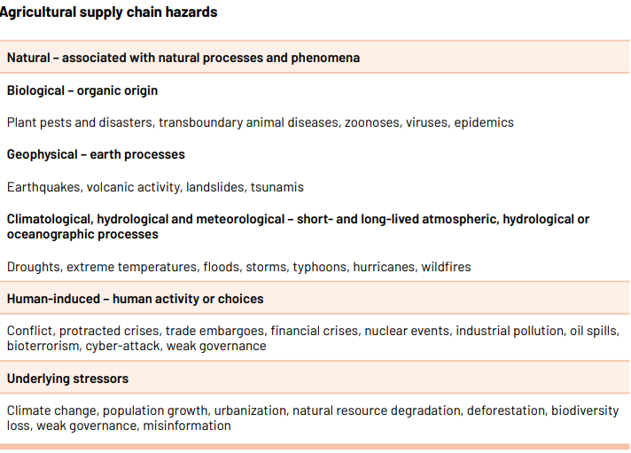 This morning I have been reading a recently published paper by the UN FAO titled: ‘Guidelines to increase the resilience of agricultural supply chains‘. This incredibly interesting publication details the need for the global food system to be increasingly able to recover from shocks and stresses. It contains a myriad of information about how interconnected our agricultural supply chains are and how when creating policies to increase resilience all stages of the chain needs to be accounted for.