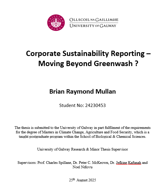 Nearly there ! I will be submitting my paper for academic scrutiny ( and marking ) this week. I have really enjoyed and learnt from undertaking this work in depth and working with the academic staff at the University of Galway. When appropriate I will share the paper on this website in full . The next step after this to submit for a leading journal publication. This paper adds to my ability and capabilities on working closely with food businesses on their journey of “mitigation and adaptation “ in climate change .