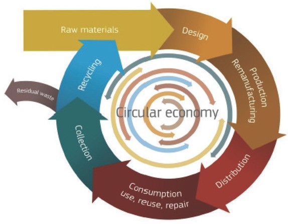A large proportion of industrial or business entities are following the linear economy pathway. The linear economy model is based on the take, make, and dispose of model. However, this can only operate if there are infinite resources. That is why a circular economy is needed to treat the infinite resources as finite resources. Several organizations (PACE and MacArthur Foundation) are advocating for just transitions from linearity to circularity in industrial systems. A circular economy (CE) is based on three principles: make; use and recycle. The concept can be applied in food, electronics, plastics, textiles, and capital equipment. The focus mentioned above areas is covered extensively by the Platform for Accelerating the Circular Economic (PACE) Circular Economic Agenda.