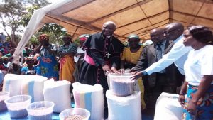 Karonga Diocese through Caritas Commission, a development arm of the church, is implementing a relief programme in Chitipa, Karonga and some parts of Rumphi District in Northern Malawi. This is in response to food shortage due to low yields in the 2015/2017 production season which was affected by drought and floods. Malawi has seen an increase to severe weather conditions in the past 20 years. The Malawi Vulnerability Assessment Committee(MVAC) estimated that 6.5 million people would be food insecure. Karonga Diocese with assistance from Pope Francis has rolled out the programme to cover .......... vulnerable households in the three districts. It reaches out to some of the most hard to reach areas in the country like Tchalo in Rumphi District which can only be accessed by a boat. This is in line with the moto of the Diocese which is " we shall go to them". The project will run for three months from February to April which considered to be the lean months of the year. The launch of the project was done on Monday, 20th March, 2017 and was graced by Right Reverend Martin Mtumuka who is the head of Karonga Diocese.