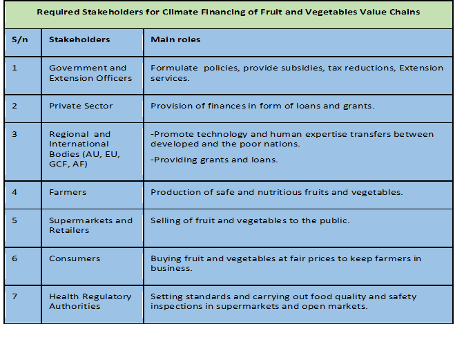Table 2 : Stakeholders under the Climate Financing of fruit and vegetables innovations:
