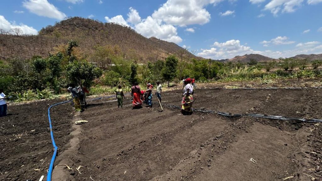 Figure 5: setting up irrigation equipment for farmers supported by Irish Aid